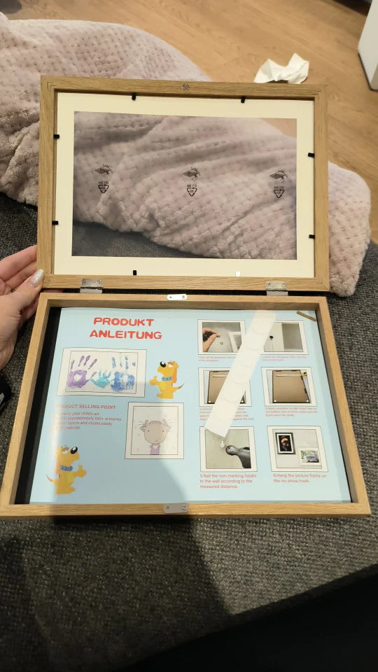Palongo-rammen forenkler fremvisningen af kunstværker: Den er let og nem at installere, så du kan ændre din indretning på et øjeblik og tilbyde fleksibilitet og funktionalitet til at fremvise dine børns kreativitet. Dens lethed betyder, at den nemt kan flyttes fra et rum til et andet, hvilket gør det nemt at tilpasse din indretning til de skiftende årstider eller til nye kunstneriske inspirationer.