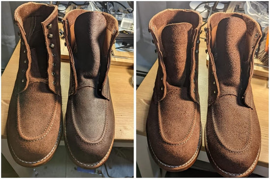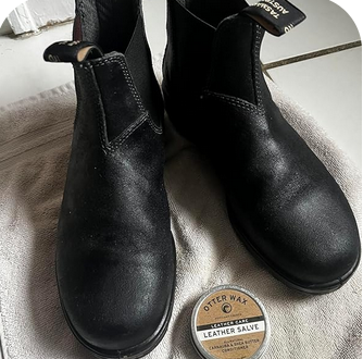 3/ Tørring : Brug et tørklæde til at tørre overskydende balsam af. Lad det tørre i fri luft i et par timer. Balsammen har brug for tid til at binde sig og smelte ind i læderet.